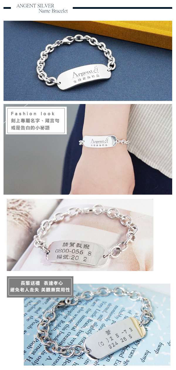客製化手鍊製作,在長牌刻上專屬名字、箴言句,也可作為關懷老人手鍊,兼具美觀跟實用性,客製化手鍊依你的想法擁有不同的可能-Argent安爵銀飾