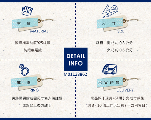 | 贈品 | 小拭銀布、盒子、提袋(如有電鍍則無拭銀布) |