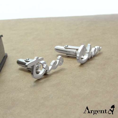 成對英文字母簍空純銀袖扣銀飾,個性袖扣推薦,客製化訂做英文字母造型,獨特造型的袖扣推薦給您,還有多種字型可客製化選擇喔-Argent安爵銀飾