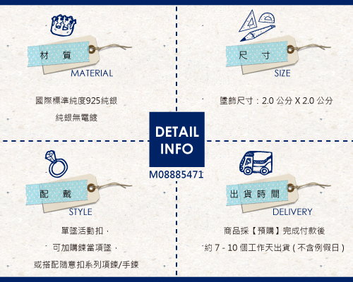 | 贈品 | 小拭銀布、盒子、提袋(如有電鍍則無拭銀布) |