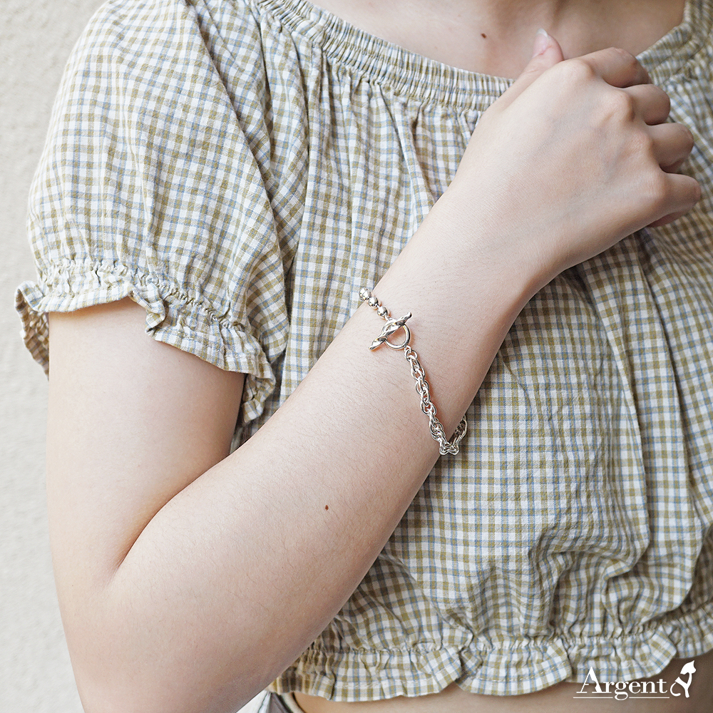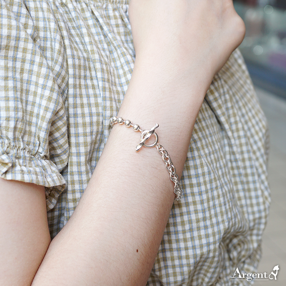 麻花鍊搭配珠珠造型手鍊,簡單、乾淨的設計,將銀的優點放大,無論素衣或花衫,這款富風格與個性的手鍊,也可當腳鍊配戴,都展現了迷人的時尚態度。-Argent安爵銀飾工房