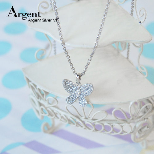 「閃蝶」造型項鍊,優雅可愛的蝴蝶,鑲上高貴迷人的晶鑽,襯托了其本身「美麗」的意象,給華麗一詞寫下全新篇章。-Argent安爵銀飾