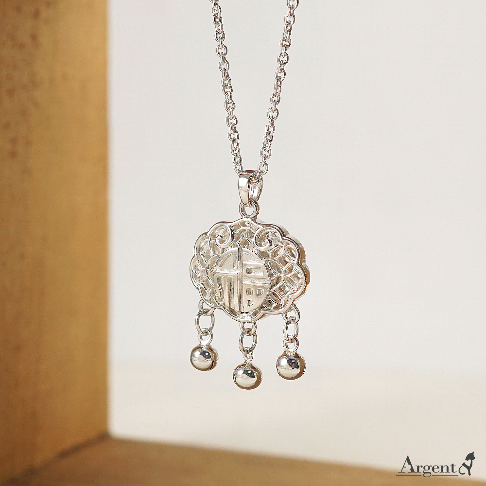 取自經典長命鎖意象,將祝福化作精緻的純銀飾品,