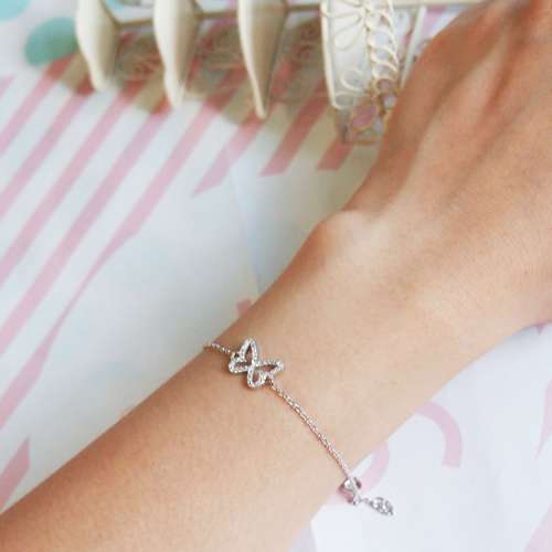 「晶鑽蝶舞」蝴蝶主題手鍊,高雅美麗的晶鑽環鏈,搭配小巧可愛的蝴蝶主題,襯托出了氣質與內斂的潛在性格-Argent安爵銀飾