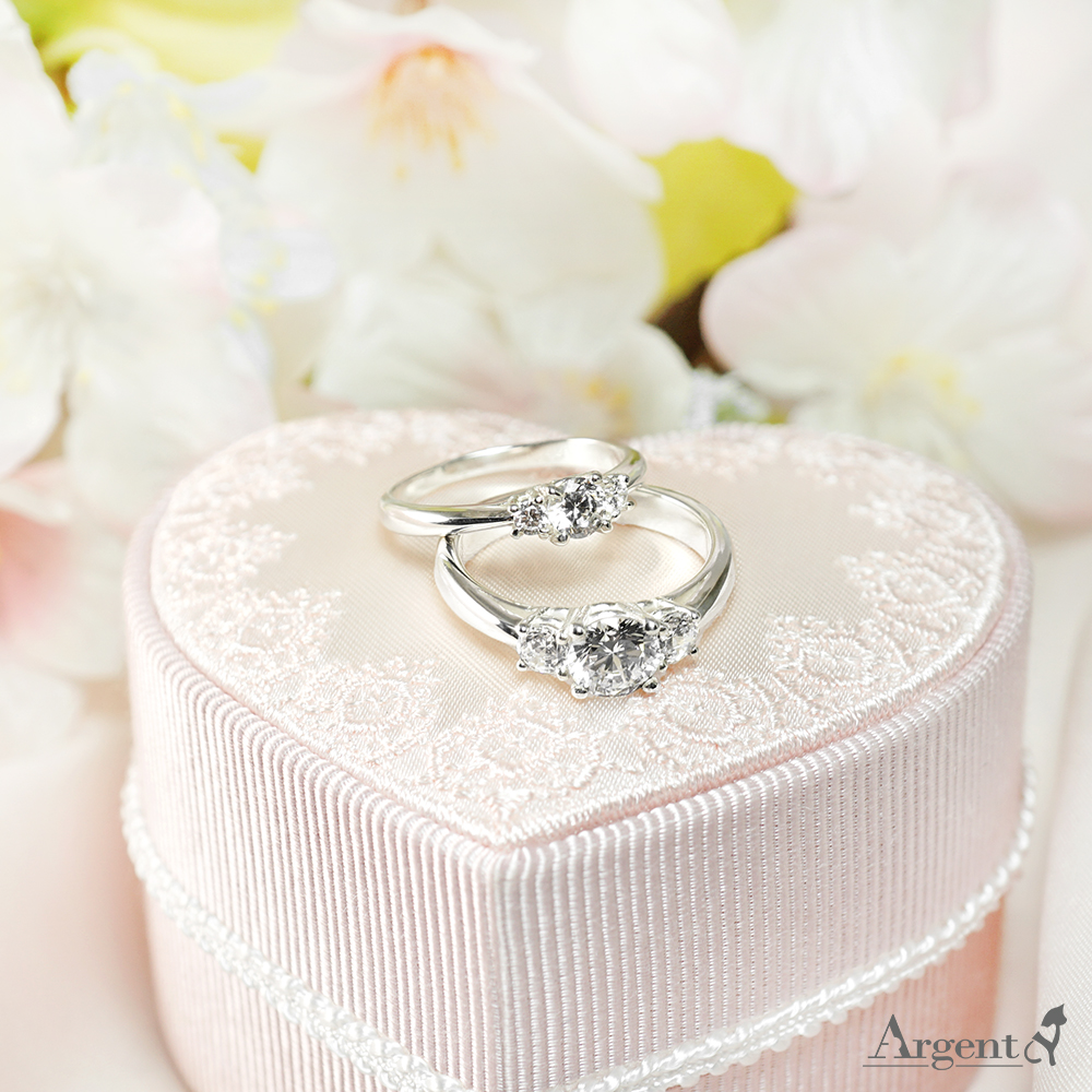 | 商品名稱 | 「閃耀(大鑽/小鑽)」造型3鑽鑲嵌純銀戒指|戒指推薦 |