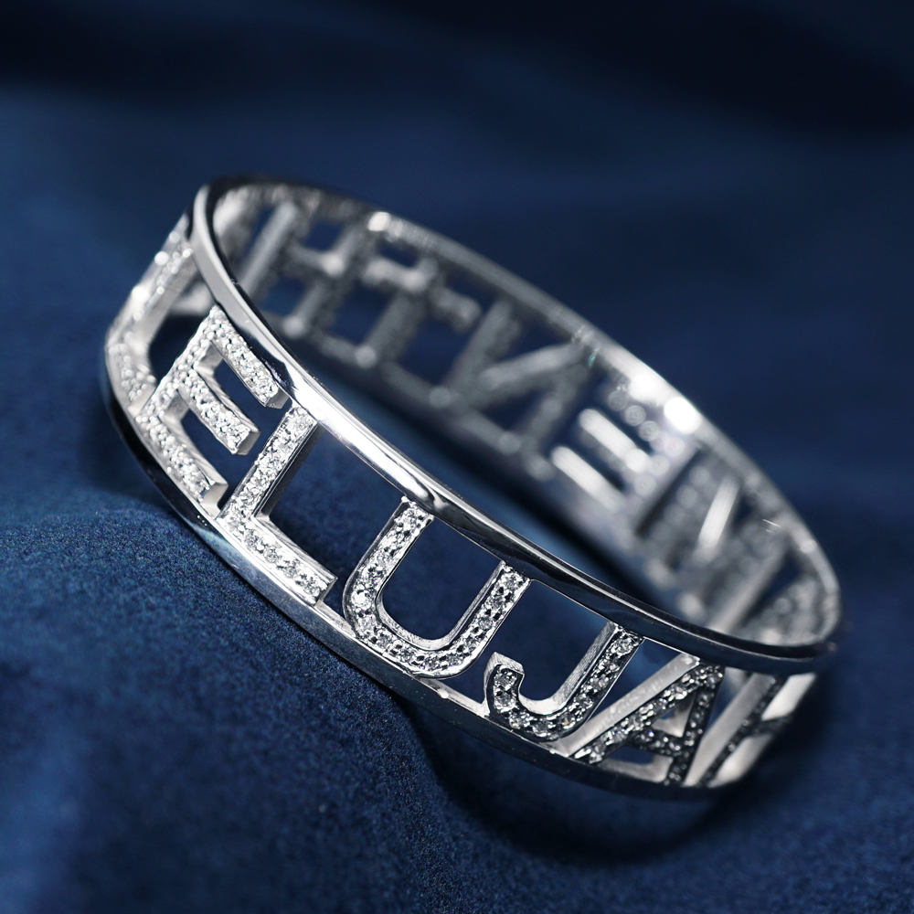 滿鑽英文密碼純銀手環,客製化手環,925純銀打造,全戒圍環繞簍空雕刻,神秘獨特的客製化手環,讓獨一無二的銀飾為你散發魅力吧-Argent安爵銀飾